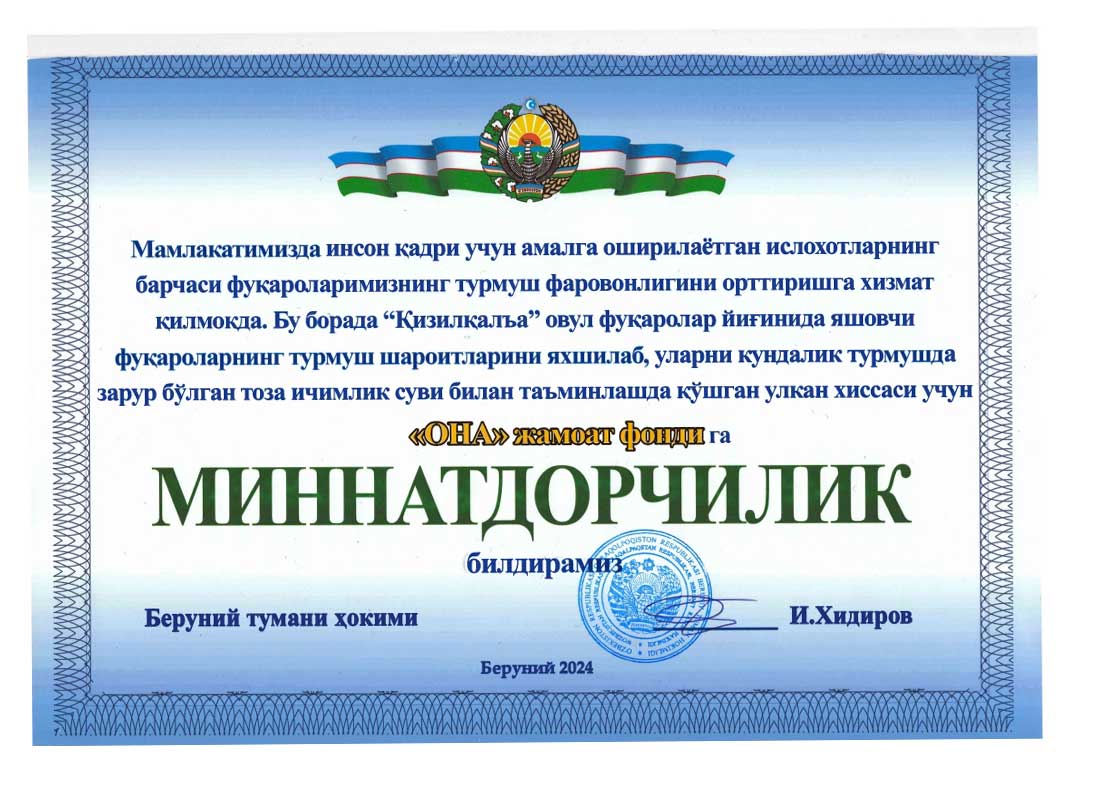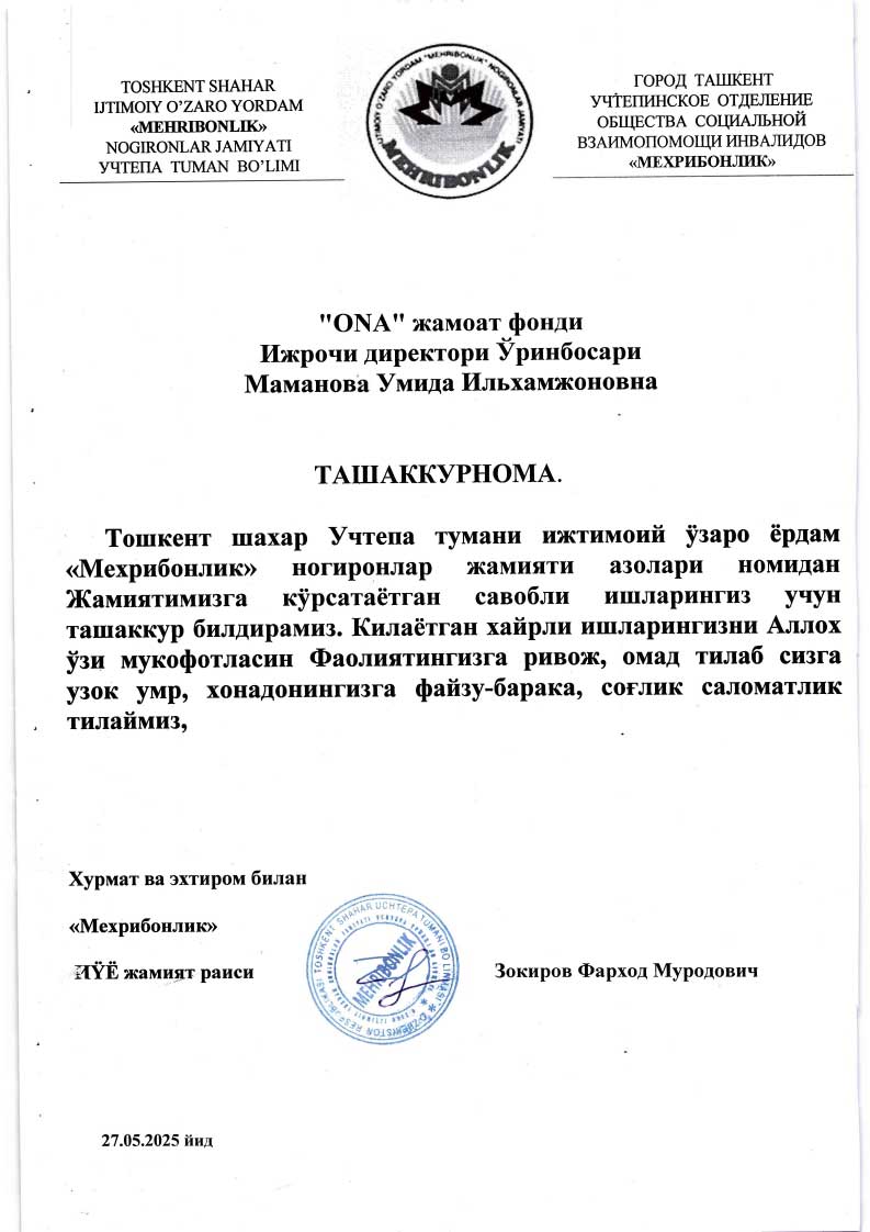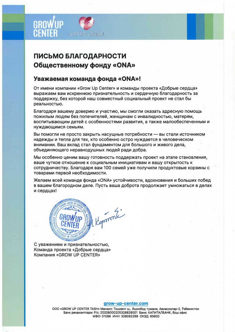 Благодарственное письмо